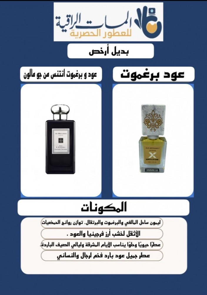 عطر بديل عود برقموت وايت استون 50 مل انتنس