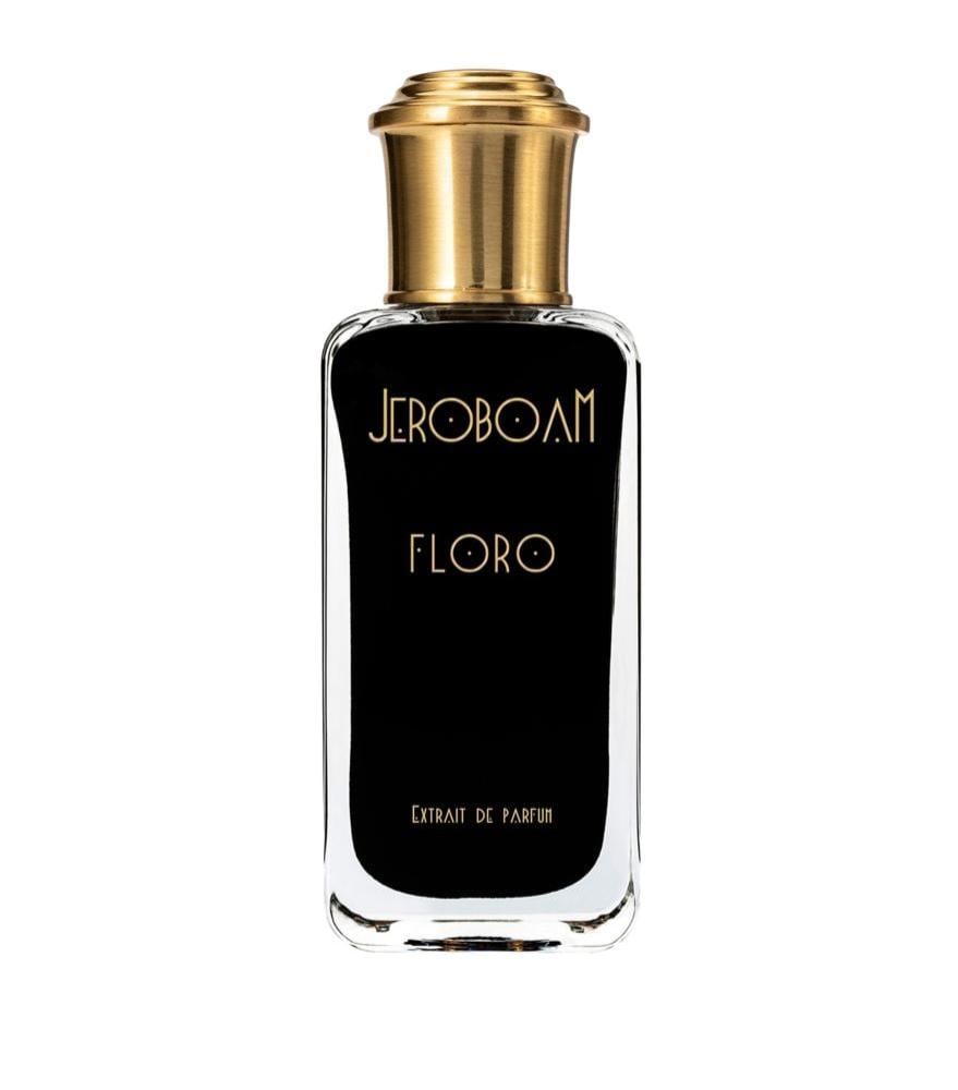 Floro Jeroboam عطر للجنسين. Floro صدر عام 2021. إفتتاحية العطر التفاح و الأناناس; قلب العطر النوتات الزهرية, الياسمين و خشب الصندل; قاعدة العطر تتكون من خشب الأرز, المسك و الأخشاب.