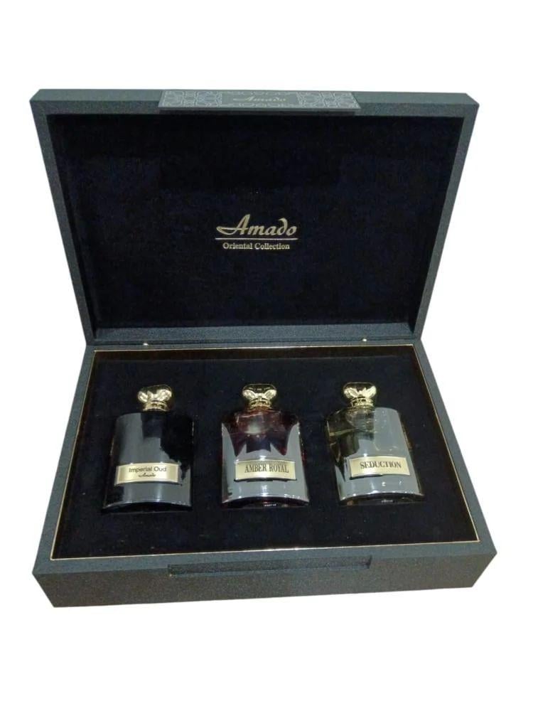 طقم امادو ثلاث قطع -عطر لي مسك-عطر امبر -عطر لذر-طقم فاخر