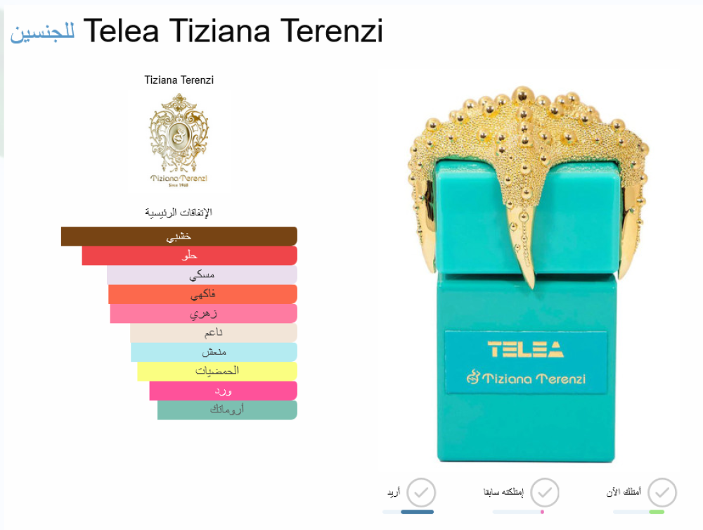 عطر تيليا Telea fragrance من اصدارات بيت الأزياء الإيطالي العريق تيزيانا تيرينزي Tiziana Terenzi. عطر Teleaخشبي زهري بالمسك يتناغم مع كلا الجنسين. تم اطلاق العطر حديثاً في عام 2020.