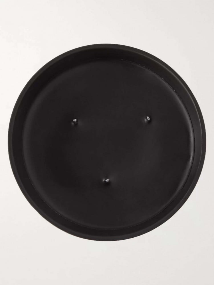 وعاء السيراميك الأسود مصنوع يدويًا وله شكل بيضاوي مميز للعلامة التجارية.