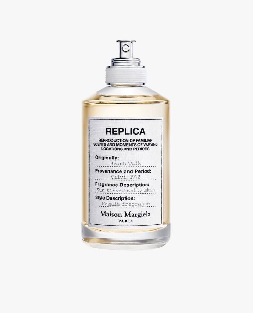 أطلقت ميزون مارجيلا عطر ريبليكا بيتش ووك للنساء عام ٢٠١٢. زجاجة العطر هذه تنتمي إلى مجموعة ريبليكا الجديدة للنساء: سوق الزهور، ومشي الشاطئ، وأمسية المهرجانات. نجح عطر ميزون مارجيلا بيتش ووك في تجسيد جوهر السعادة الهانئة ليوم صيفي.