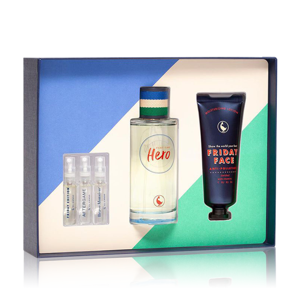 طقم عطور للرجال يحتوي على ماء تواليت 125 مل مع لوشن للجسم 75 مل وثلاث عينات 4 مل من عطور الجانسو الفاخرة. تأتي المجموعة في علبة ملونة ومبهجة لتجعلها خيارًا مثاليًا كهدية أنيقة لأحبائك في المناسبات السعيدة والخاصة. أنت البطل الحقيقي لقصتك، تكتب بمواهبك الفريدة العديد من الإنجازات والانتصارات التي تبقى مصدر فخر وإلهام لروحك. مزيج منعش ومنعش من البرغموت والليمون واليوسفي يضفي لمسة حمضية خفيفة وحيوية على العطر منذ اللحظة الأولى. يغلف العطر أوراق خضراء طازجة للتأكيد على مفهومه المنعش وحيوية رائحته الخفيفة. إنه مثل طاقة إيجابية تخيم على مشاعرك وتعزز مشاعر الثقة والتفرد بداخلك.