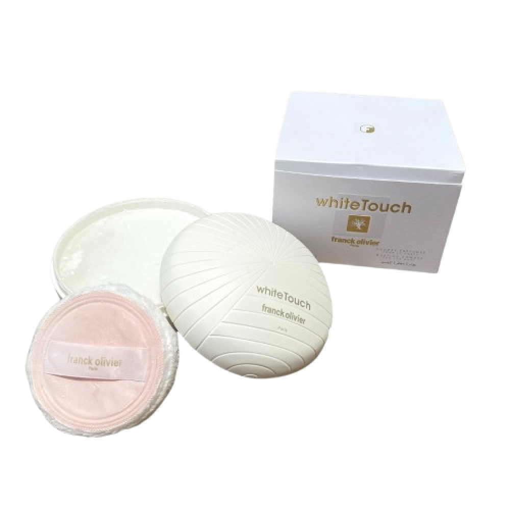 البودرة Franck Olivier White Touch بحجم 200 جم، بودرة جسم ناعمة برائحة أنثوية منعشة تمزج بين الكشمش الأسود والكمثرى والفريزيا والورد، مع لمسة مسكية خشبية تدوم بخفة على البشرة وتخليها ناعمة ومنعشة طول اليوم.